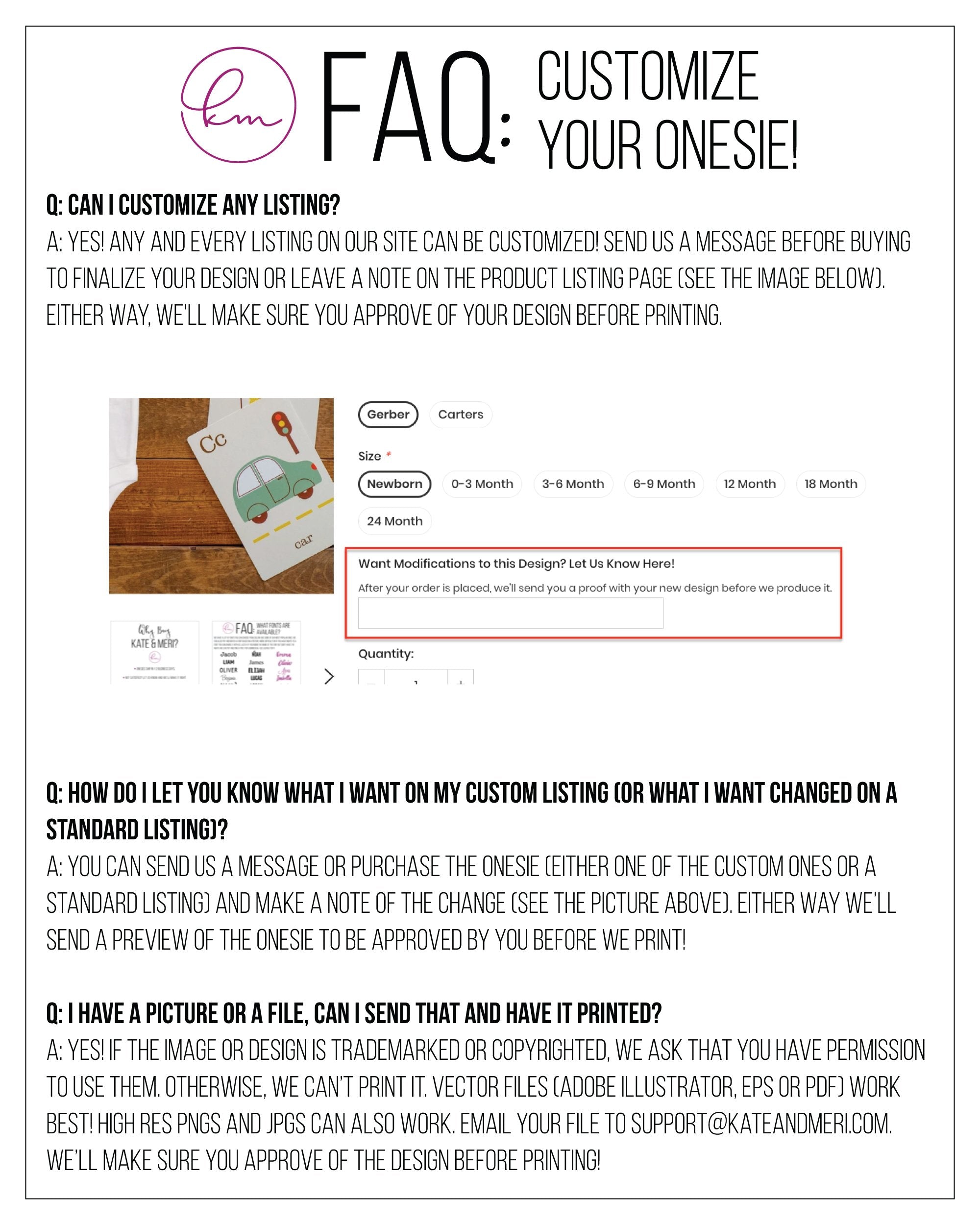 We don't just want you to find the onesie that you’re looking for but to be happy with the entire experience including seeing your baby wear it until they grow out of it. If you feel like anything about your onesie isn’t 100% let us know and we’ll work with you to make it right.